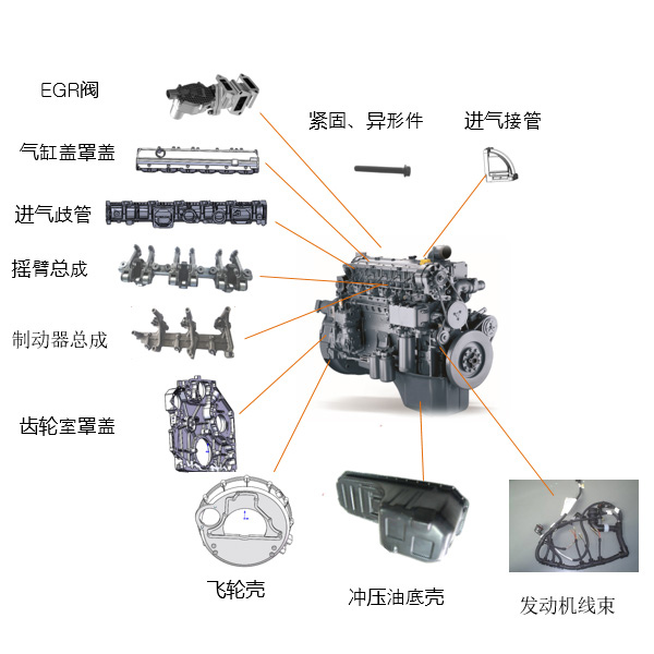 九隆公司專注于從事汽車零部件的研發和生產。主要有鋁壓鑄系列、搖臂總成系列、制動器總成系列、 沖壓件系列、高強度螺栓系列。